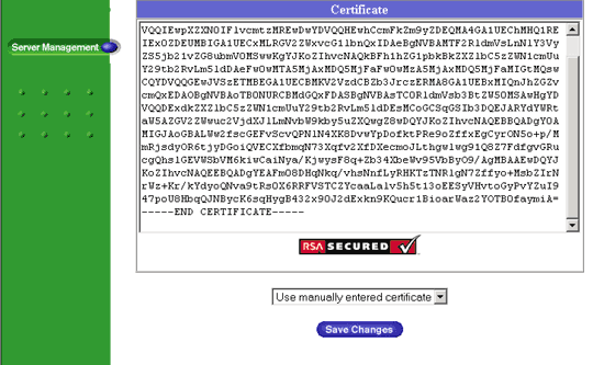 Select Use manually entered certificate from the pull-down menu at the bottom.