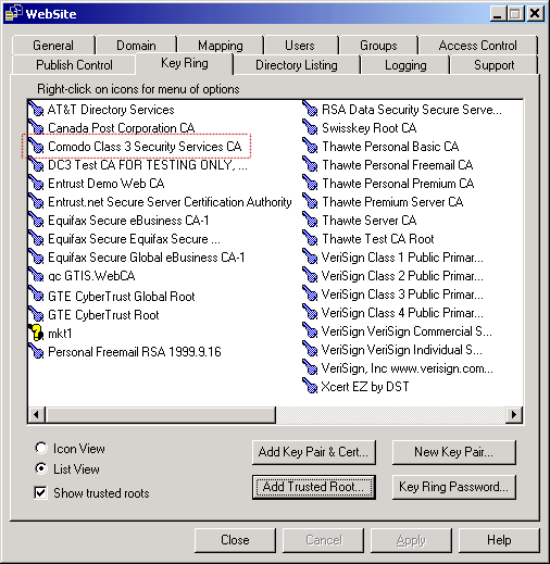 Ensure AddTrustExternalCARoot.crt remains in the Trusted Root area.